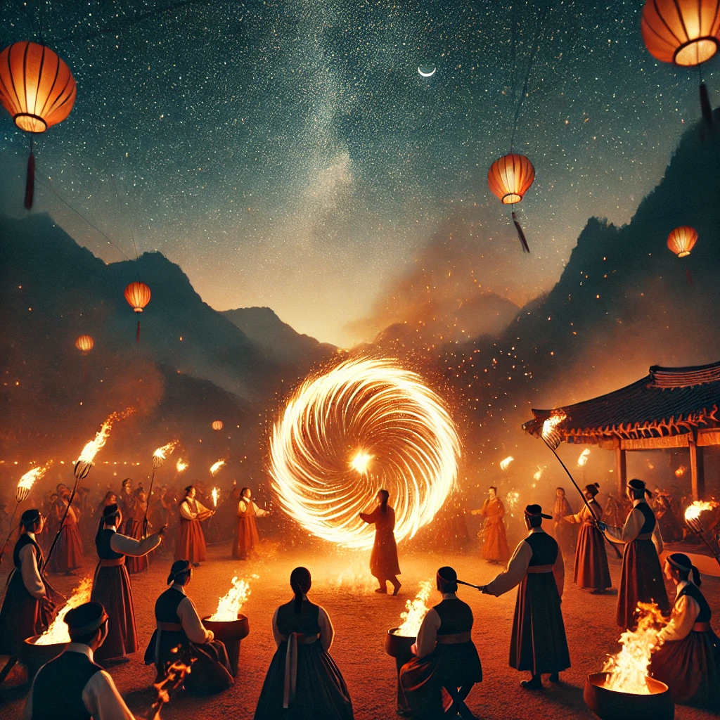 - 🔥 달집태우기: 불을 피워 액운을 태우고 소원을 비는 행사